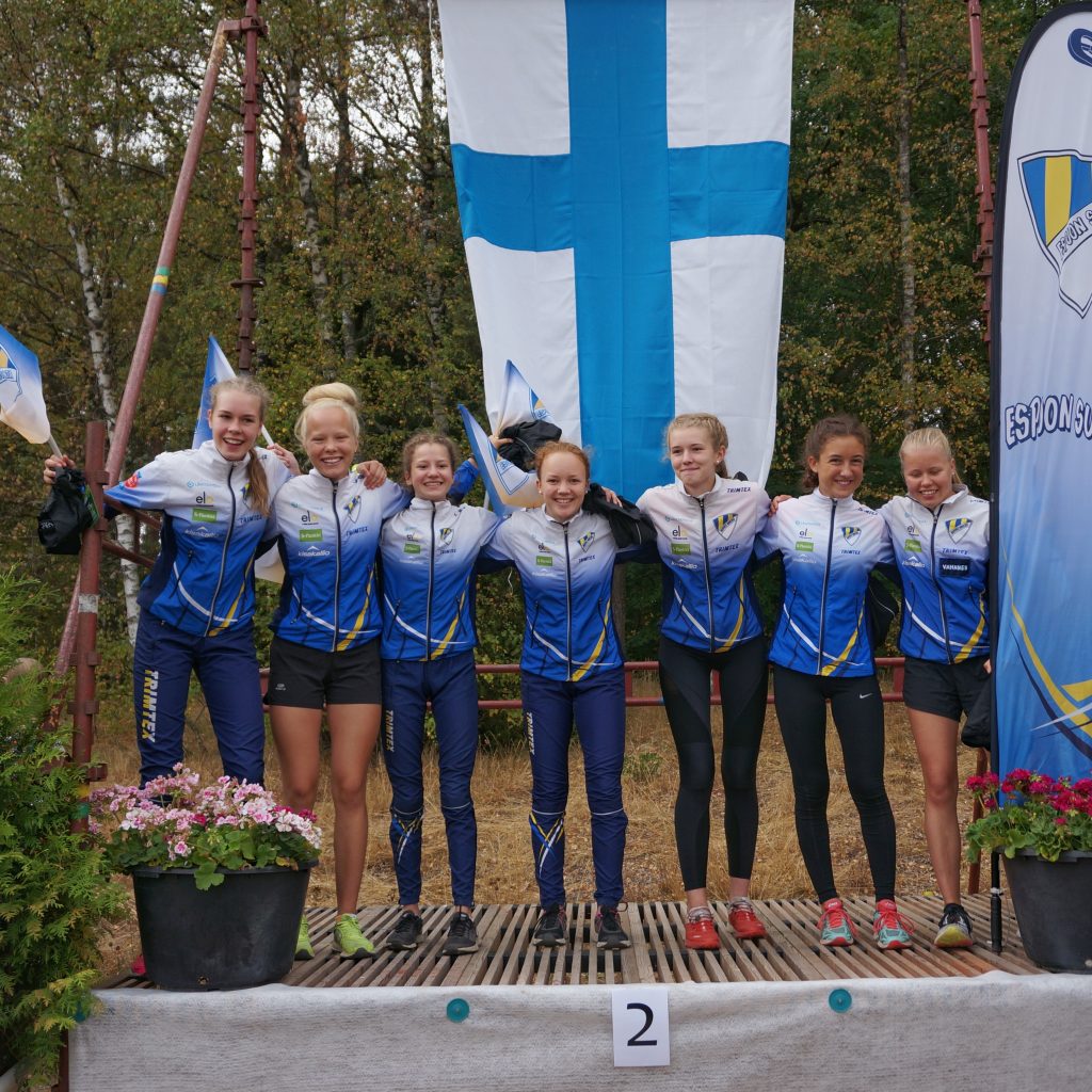 Pari tuntia poikien lähtöä myöhemmin, auringon noustua, starttasi tyttöjen D18-viesti, joka koostui viidestä osuudesta. Joukkueita Essulta lähti matkaan neljä. Ykkösjoukkueessamme oli ennätyksellisesti peräti neljä nuorten maajoukkuesuunnistajaa, mukaan lukien vakiovahvistuksemme Sveitsin Siana Senn. Joukkue sijoittui hienosti hopealle, noin viisi minuuttia tuttua ruotsalaisseuraa, IK Hakarspojkarnaa perässä. Pronssia otti toinen suomalaisjoukkue, Jämsän Retki-Veikot. Hienoa on se, että pääsemme osallistumaan tähän viestiin vielä ensi vuonna samalla kokoonpanolla.