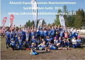 EsSun nuorisotoiminnalla on taas kerran takana huikea kausi ja vuoteen on mahtunut paljon hienoja tapahtumia, kisoja, menestystä ja yhteishenkeä. Nyt kaikki pääsevät äänestämään EsSun nuorisotoiminnan sykähdyttävintä hetkeä 2018! Ehdokkaiden esittely youtubessa: