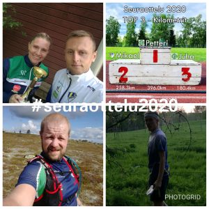 #seuraottelun aktiivisen suunnistaja Petteri kertoi kilometrejä kertyneen toukokuun aikana painonpudotus- juoksuvoiman kohotus ja nousukilometriprojektin myötä. Kun korona sulki jäähallit, kiekkokausi jäi kesken, suunnistus sai enemmän aikaa. Petterillä oli tarkoitus toukokuun aikana kerätä 8850 nousumetriä ja tämä tavoite täyttyi kirkkaasti. Kilometrejä Petterille kertyi keskimäärin 12 päivässä ja jaksamisestaan hän kertoi, että lepopäiviä oli toki välissä mutta muuten joinain päivinä saattoi mennä saman suunnistuskartan kaikki radat.