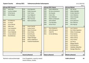 eGroup ryhmät kaudelle 2021 on nyt valittu ja yhteensä urheilijoita on 65.
