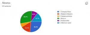 Vain yhden äänen perässä toisena tuli Henrik Palmenin Compass Rose ja kolmanneksi ylsivät yhdessä samoilla äänimäärillä Alvar Palmenin Majkärin Maestro ja Miika Vehmaksen Afternoon saber.