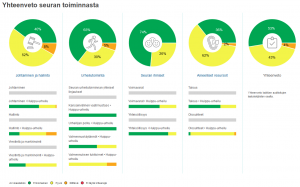 Alla on yhteenvetokuvat siitä, miten EsSun toimintaa arvioitiin eri osa-alueilla. Puheenjohtajan sanoin kaiken ei kuulukaan olla ”erinomaista”, koska silloinhan ei olisi enää mitään kehitettävää. Paljon vihreää väriä tästä huolimatta kuvaajissa näkyy. Jatkossakin haluamme vahvistaa vahvuuksia, kuten hyvää yhteishenkeä ja laadukasta monipuolista urheilutoimintaa sekä nostaa kehityskohteita uudelle tasolle.