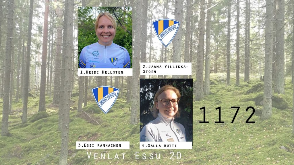 Mynämäen Jukolaan on yksi yö ja viimeiset valmistelut kohti suunnistusväen juhlaa ovat meneillään. EsSun väreissä juoksee viikonloppuna peräti 80 naista ja 84 miestä. Aikamoinen joukko! Tässä on joukkuekuvat kaikista joukkueista, ensin Venlojen ja sitten Jukolan joukkueet. Musta numero kuvassa oikealla on kunkin joukkueen kilpailunumero.