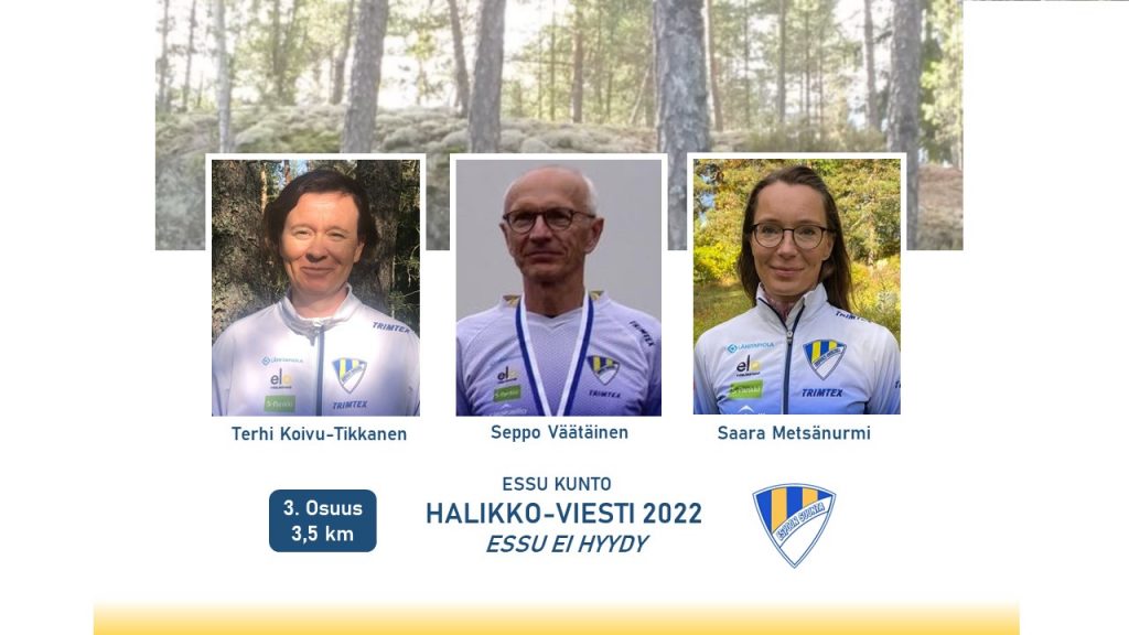 Halikko-viesti kerää taas suuren joukon seuralaisia. Viesti käydään tänä vuonna Halikon Salaisissa ja kilpasarjaan lähtee peräti 3 Essu-joukkuetta ja kuntosarjaan yksi. Tässä on mahtava kuvakavalkadi kaikista joukkueista osuuksittain. (HUOM! Joukkuejako on perjantai-illalta, jos juokset viestissä niin tarkista viimeistään kisapaikalle saavuttuasi että onko joukkueessasi muutoksia.)