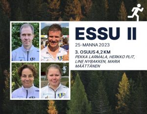 Espoon Suunnasta osallistuu tänä vuonna peräti 3,5 joukkuetta 25Mannaan. Puolikas joukkue tarkoittaa sitä, että se on yhteinen joukkue majanaapurimme Espoon Akilleksen kanssa. Tällainen määrä joukkueita taitaa olla ihan ennätys Essulle!