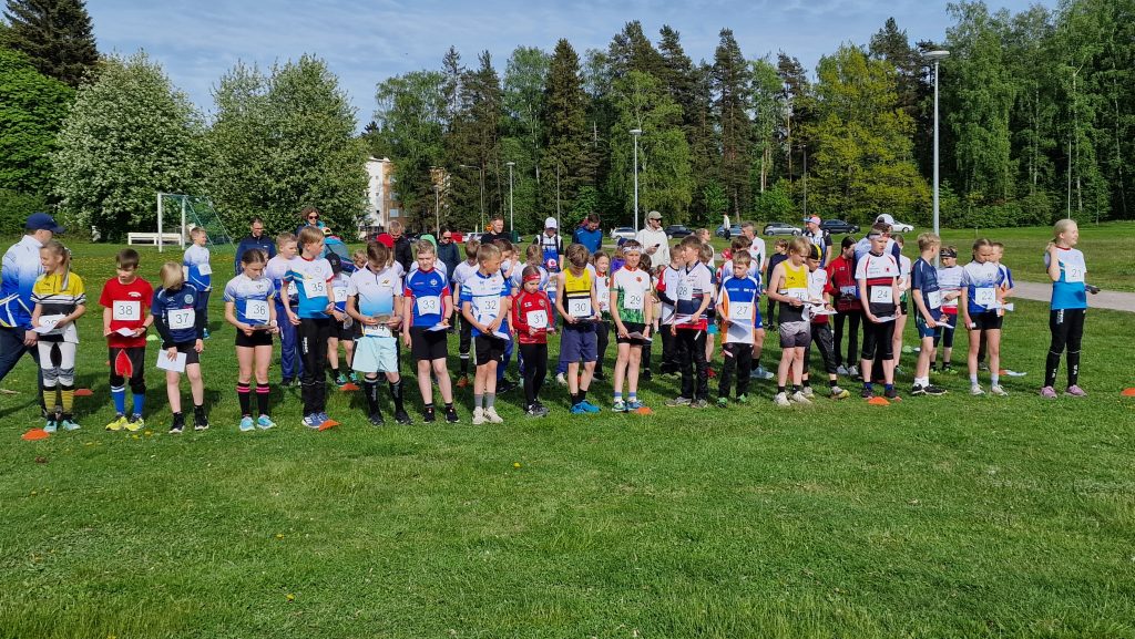 Kilpailusarjassa oli peräti 37 vähintään 6 henkistä joukkuetta ja avoimessa sarjassakin juoksi 16 joukkuetta. Aika iso porukka Uudenmaan junnuja! Lynx, Espoon Akilles, Helsingin Suunnistajat, Pihkaniskat, OK Trian, Hyvinkään Rasti, Rajamäen Rykmentti, Hiidenkiertäjät, Rastihaukat, Rasti-Jyry, SK Uusi, Rasti-Vihti, OK77, SK Pohjantähti ja tietysti Espoon Suunta olivat saaneet joukkueita joko kilpailusarjaan tai avoimeen sarjaan. Seurapaitojen määrä Tapiolan Silkkiniityllä oli hieno!