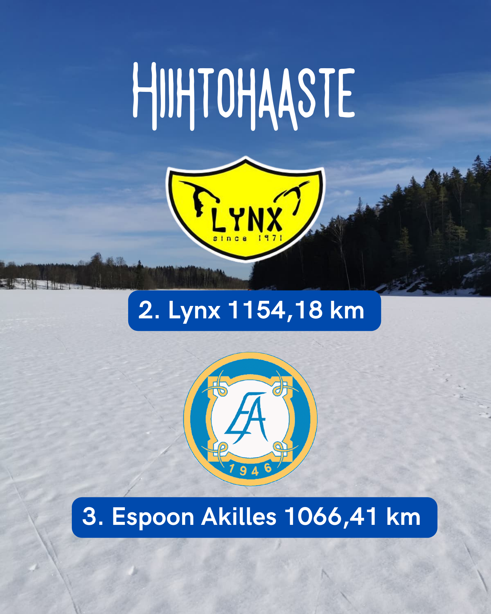 2026 Espoon Akilles, Lynx ja Essu > voittaja Essu, yhteensä koko haasteessa 5800 km