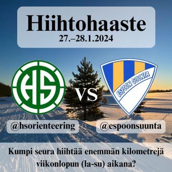 Loistavat talvikelit suorastaan vaativat leikkimielistä kisailua laduilla! Espoon Suunta on haastanut Helsingin Suunnistajat hiihtokilometrikilpailuun tammikuun viimeisenä viikonloppuna 27.-28.1.2024. Haaste alkaa...
