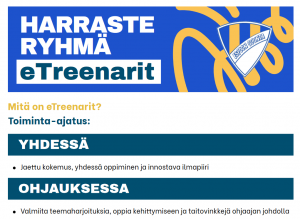 eTreenarit harrasteryhmä on tarkoitettu kaikille suunnistuksesta kiinnostuneille harrastajille, jotka haluavat harrastaa ja kehittyä porukassa. Ryhmään voi osallistua matalalla kynnyksellä, eikä osallistujien ikä-, kunto- tai taitotasoa ole määritelty. Ainoastaan suunnistuksen perusteet tulisi olla hallussa (näitä pääset oppimaan Aikuisten Suunnistuskursseilla).