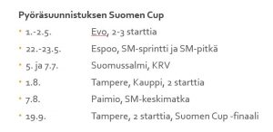 Espoon Pyöräsuunnistuksen SM-kilpailut ovat osa uutta Pyöräsuunnistuksen Suomen Cuppia. Tämän tiimoilta lauantain sprinttimatkoilta tullaan toteuttamaan ISTV-lähetys.