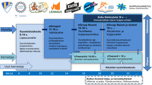 EsSun suunnistajan polku on havainnollistettu alla olevaan kuvaan. Tarkemmin eri ikävaiheiden tavoitteisiin ja painopisteisiin voit tutustua täällä.